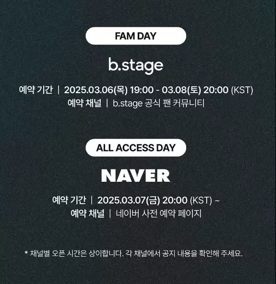 👉 FAM DAY 예약: 3월 6일 19시 (b.stage)