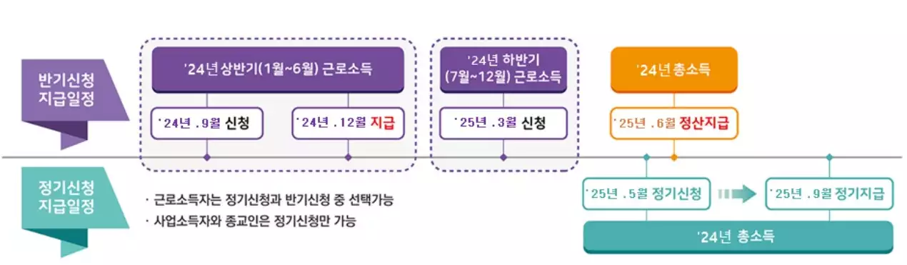 반기 신청 (하반기 소득) 2025년 9월 1일 ~ 9월 19일 2025년 12월 말